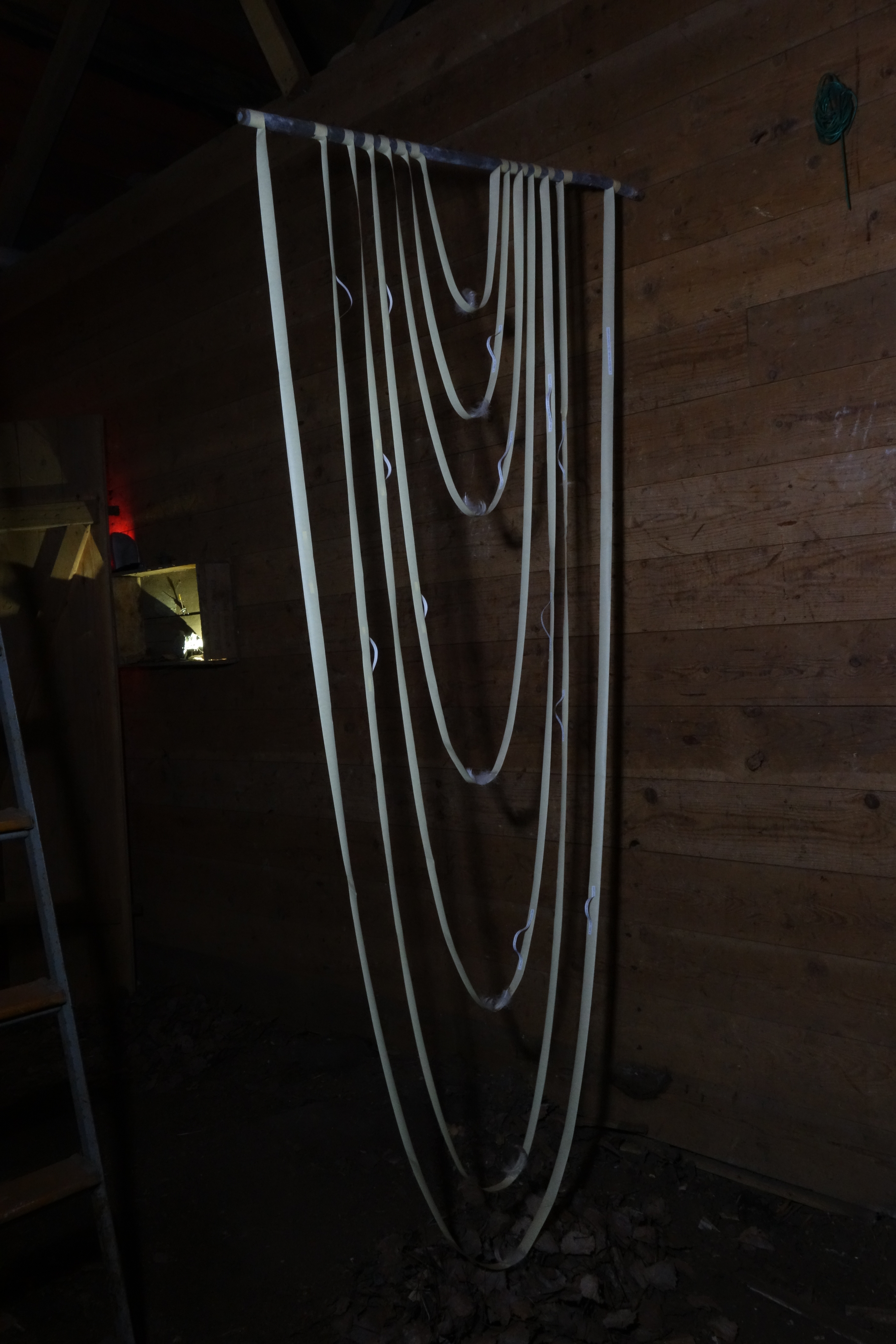 《蝙蝠的夢-一扇門和其他門》的名稱由來源自本來應當展覽的場所- 一個當地居在冬季儲存食物的石造倉庫裡入住了一隻蝙蝠,而依照瑞典法規,蝙蝠是不允許在冬眠時被打擾的,所以我搬遷展覽至木造倉庫,並運用該倉庫裡的物件和駐村期間的雕塑來創造這隻蝙蝠的夢。